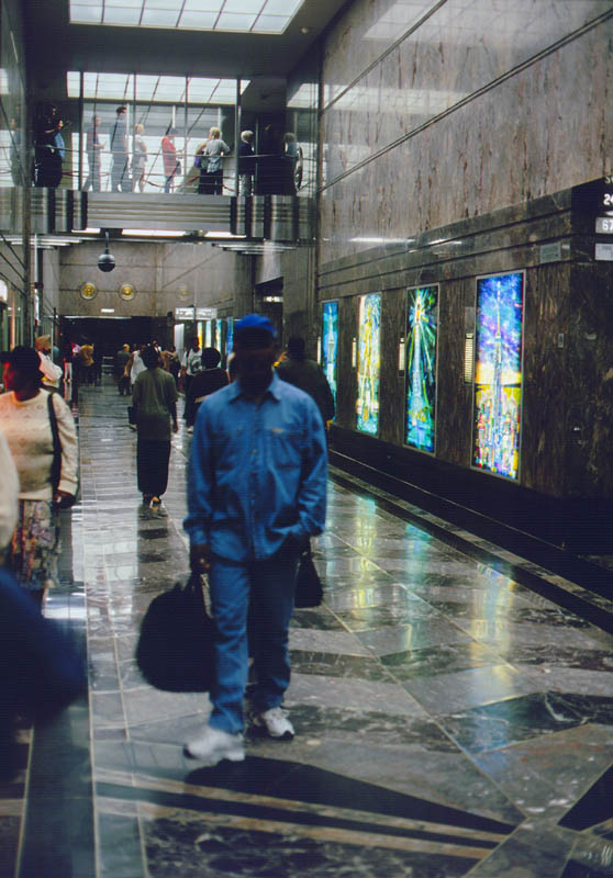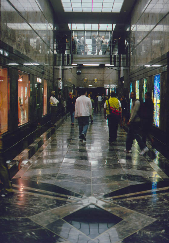 The lobby is finished with marble and aluminum trim (I think they may have cleaned it up in recent years)